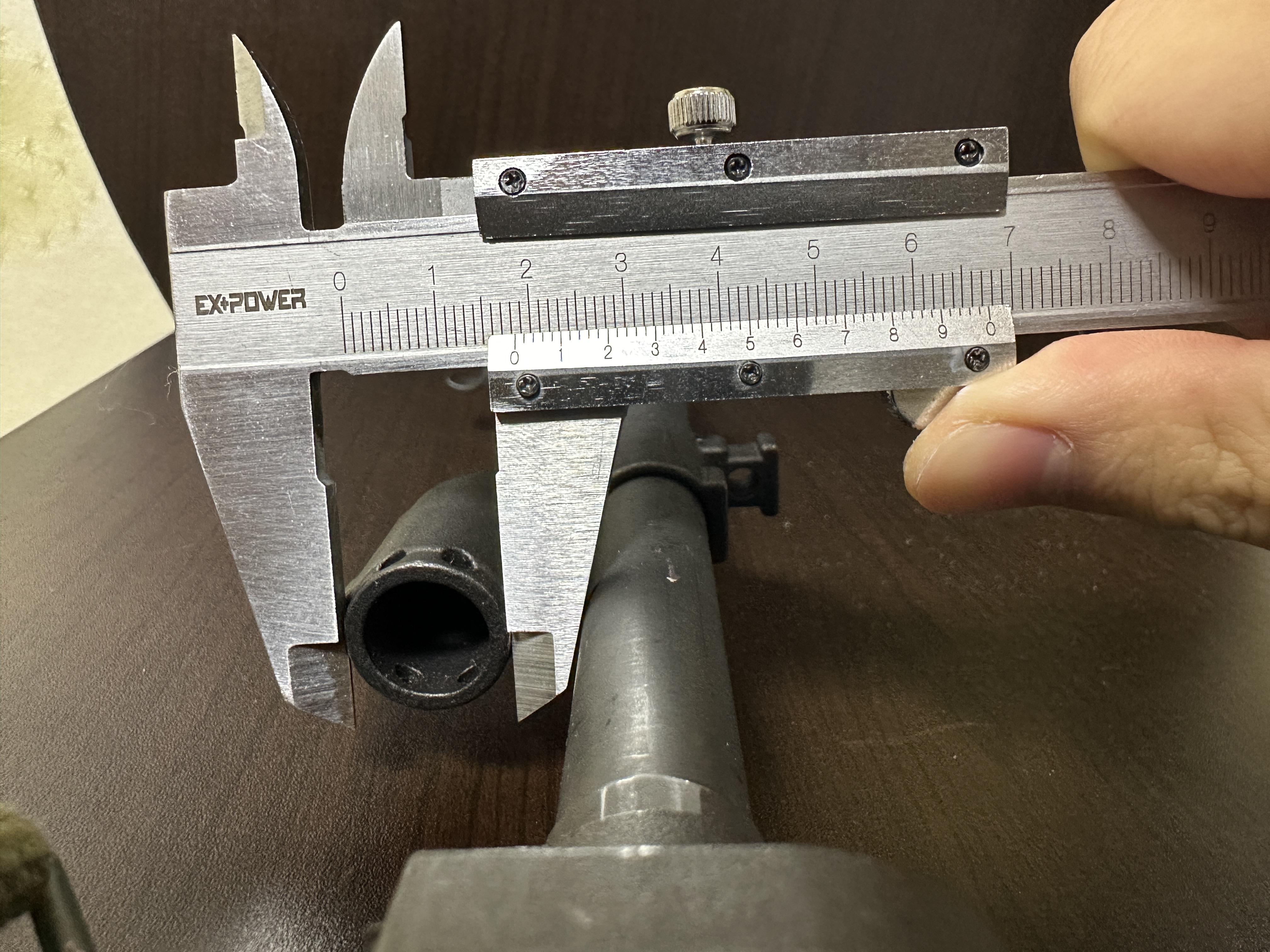 AKM 튜브 연결 부분의 치수는 18.5mm 입니다. 그럼 VS-33 입구쪽을 측정해 보겠습니다.