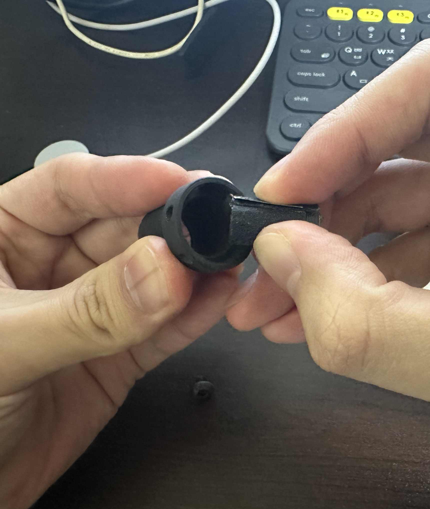 앞쪽을 분리후 측정해 보겠습니다. 18.4mm로 0.1 정도의 공차가 있네요 거의 공차가 없다 봐도 무방합니다. 저번에 산 다이소 사포로 VS-33 퓨브를 가공해 주겠습니다.